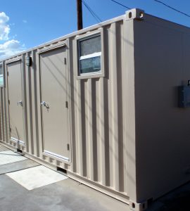Shipping container bathrooms are a modern solution to a timeless need. Shipping containers can be converted into fully functional bathrooms with all of the modern amenities you want and need. They can be built and delivered in a fraction of the time of traditional bathroom build-outs and are easily scalable should your needs change.