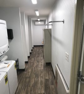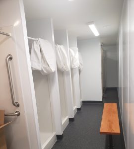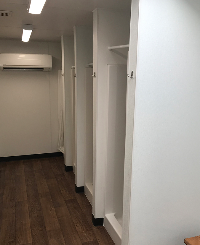 Shipping container showers are delivered to you fully plumbed and can include HVAC, hot and cold water, electrical, sinks, individual stalls, private changing areas, lockers, benches, and any other modifications to meet ADA Accessibility regulations. Modular shipping container showers are able to be fabricated in a fraction of the time and cost of standard construction and can be configured in multiple different ways to accommodate your available space and needs.