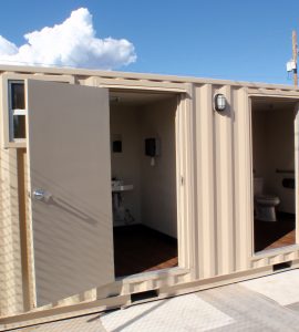 Shipping container bathrooms are a modern solution to a timeless need. Shipping containers can be converted into fully functional bathrooms with all of the modern amenities you want and need. They can be built and delivered in a fraction of the time of traditional bathroom build-outs and are easily scalable should your needs change.