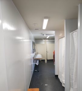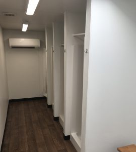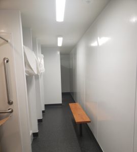 Shipping container showers are delivered to you fully plumbed and can include HVAC, hot and cold water, electrical, sinks, individual stalls, private changing areas, lockers, benches, and any other modifications to meet ADA Accessibility regulations. Modular shipping container showers are able to be fabricated in a fraction of the time and cost of standard construction and can be configured in multiple different ways to accommodate your available space and needs.